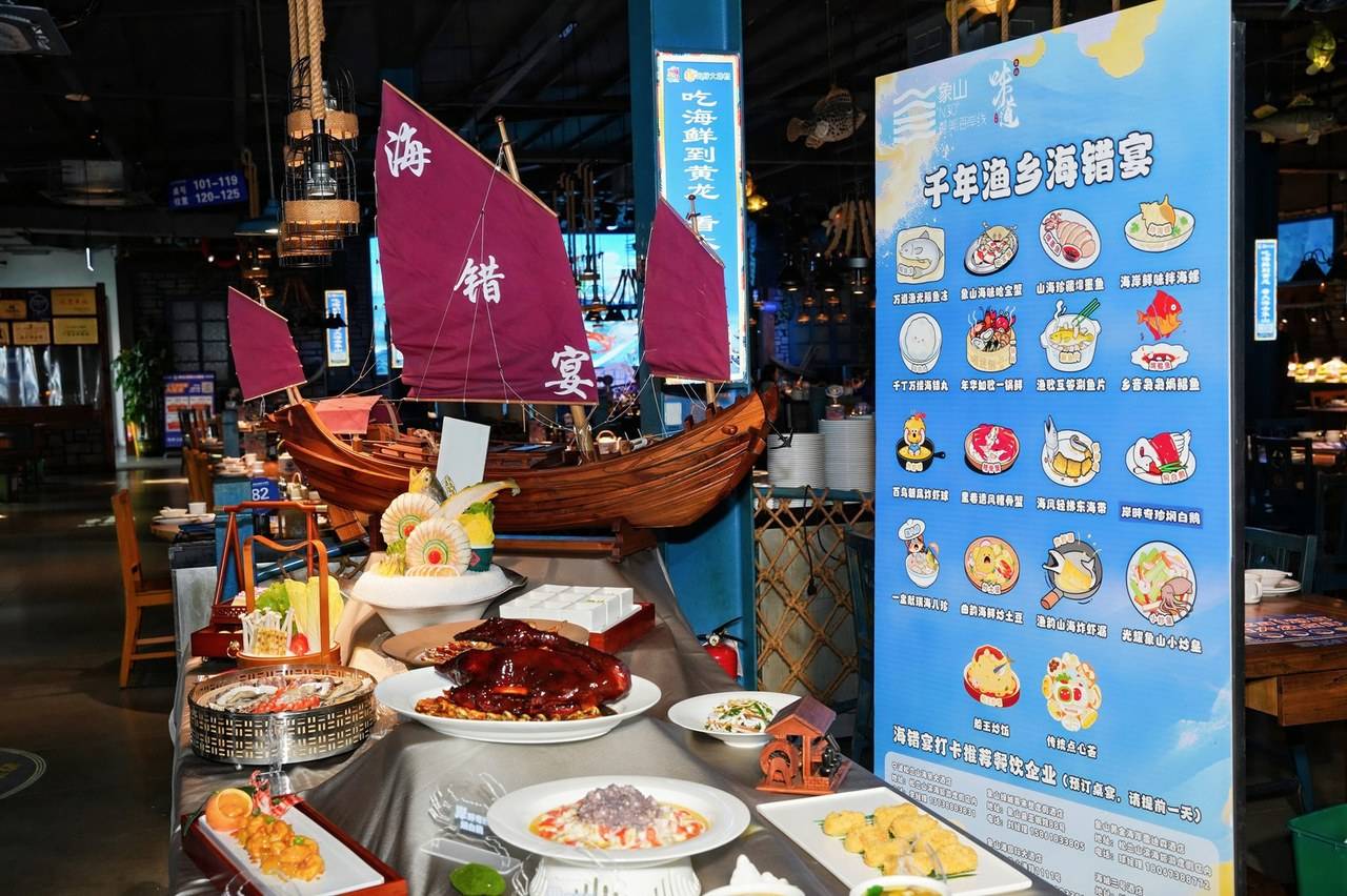 为吸引更多的杭州市民来象山观海品鲜,象山深化“美食+旅游”融合模式,推出三条各具特色的美食旅游路线,精准满足不同游客的偏好。“渔港风情·海鲜盛宴之旅”引领参与者深入码头市集,品尝地道海鲜;“海岛露营·野趣美食之旅”让热爱户外活动的游客在动手烹饪中尽享野趣;而“品质度假·精品味蕾之旅”则专注于高品质餐饮体验,以优雅环境和精致菜品诠释象山风味的格调与内涵。