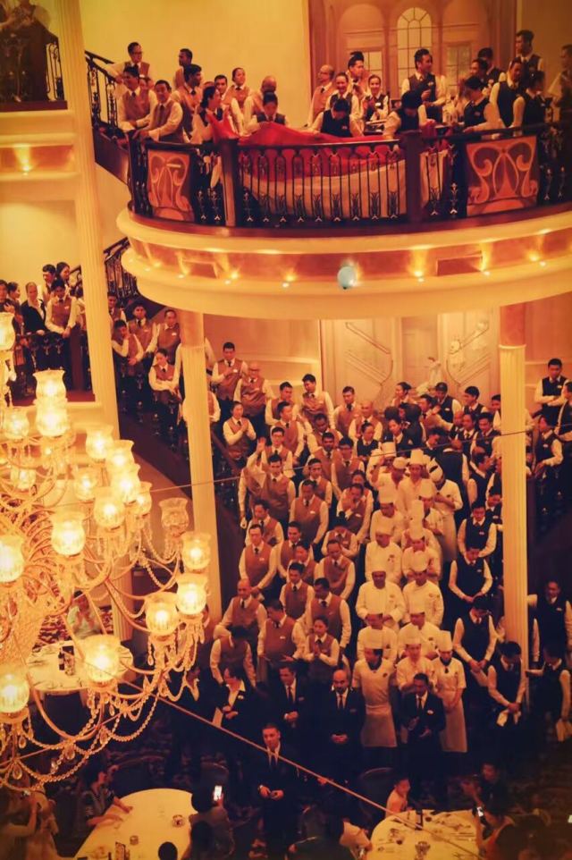 登上邮轮的第一晚,我们就迎来了全体船员及旅客一起参与的大型聚会——船长晚宴,隆重而热情,那个时候的邮轮让我恍惚有点像去到了“盖茨比的世界”。