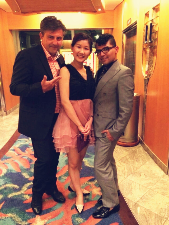 在这里我要提醒大家下,邮轮上一共有两次正式的晚宴,为了让自己美美的,要准备1-2套好看的正装哦!以小礼裙搭配高跟鞋为主,和船上的姐妹们一起合照,比比谁更美哦!