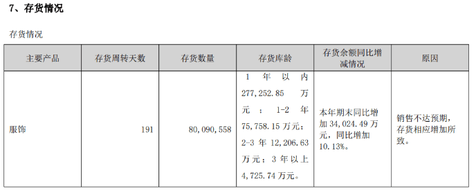 在产品层面,上半年休闲服饰收入同比下降4.98%,儿童服饰业务同比增长5.97%至43.13亿元,收入占比达七成。需要注意的是,公司上半年存货余额同比增长10.1%,存货周转天数同比增长30天至187天,公司解释称,销售不达预期,存货相应增加所致。返回搜狐,查看更多